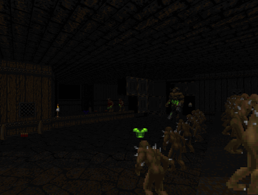 Second halloween collab. Much better than the first one. New orange and green palette ranges, better levels, cool trees, etc. I was irritated by how bad my orange range in the previous year's wad was, so I attempted to make a good new palette out of spite. |